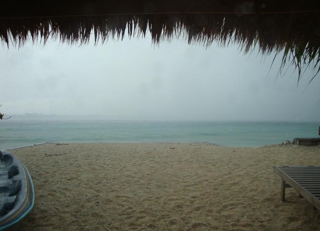 Segunda tormenta, algo más flojita. Mientras, estuvimos hablando con una pareja de jubilados, residentes en Canadá, pero uno de origen croata y otro sudafricano. En el momento en el que paró la tormenta, ambos nos ayudaron a echarnos al agua con el kayak y tuvimos que remar muy fuerte. La corriente y las olas eran algo más complicadas que por la mañana, pero aún era navegable.